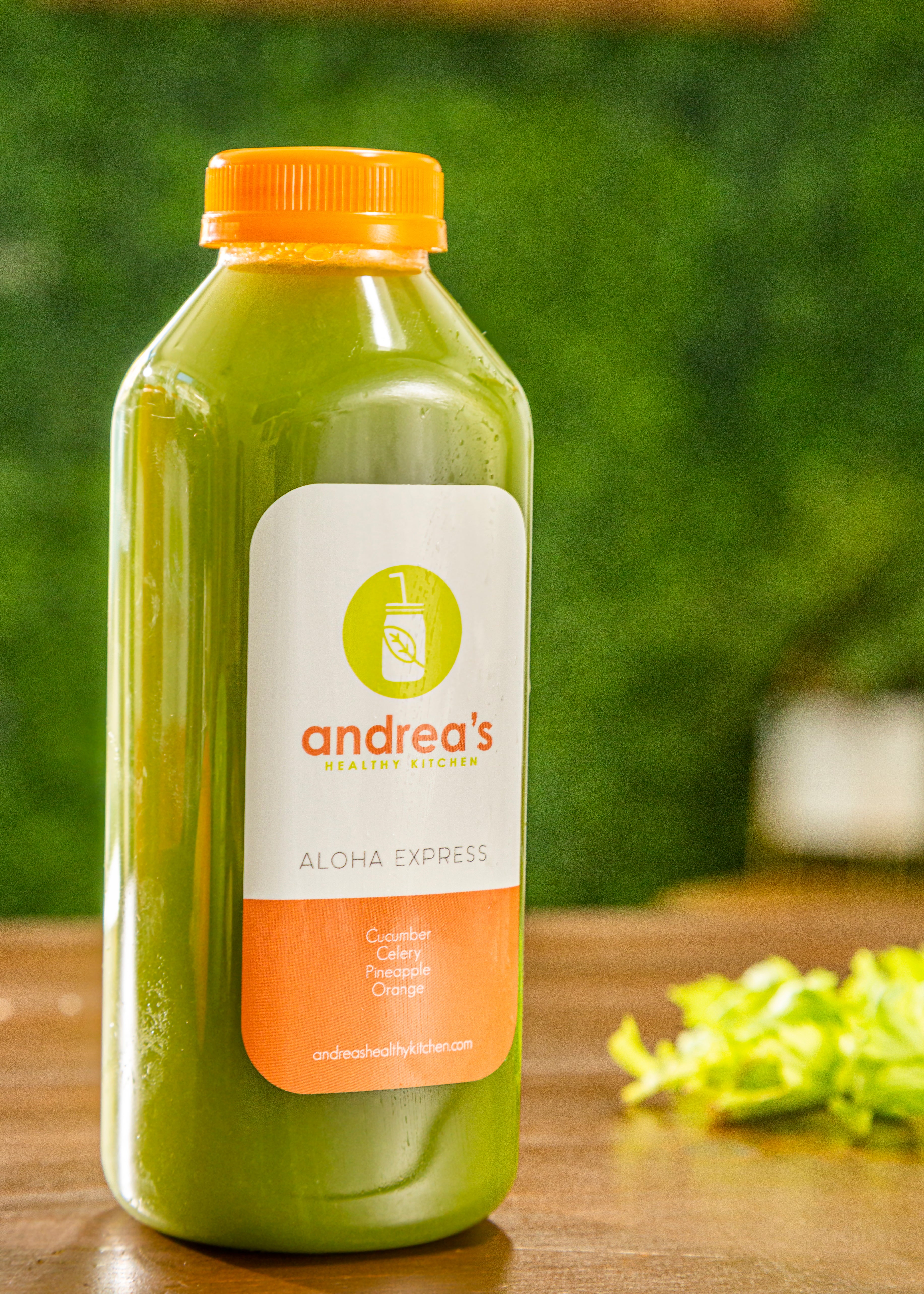 Spinach, Frozen Pineapple, Green Grapes, Celery, Ginger, Lemon Juice, and water